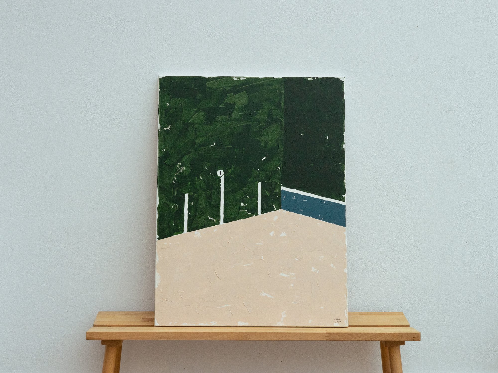 frontón verde, azul y rosa claro.