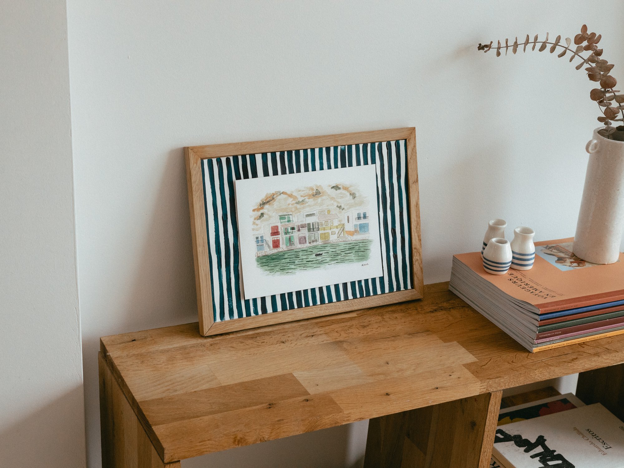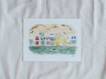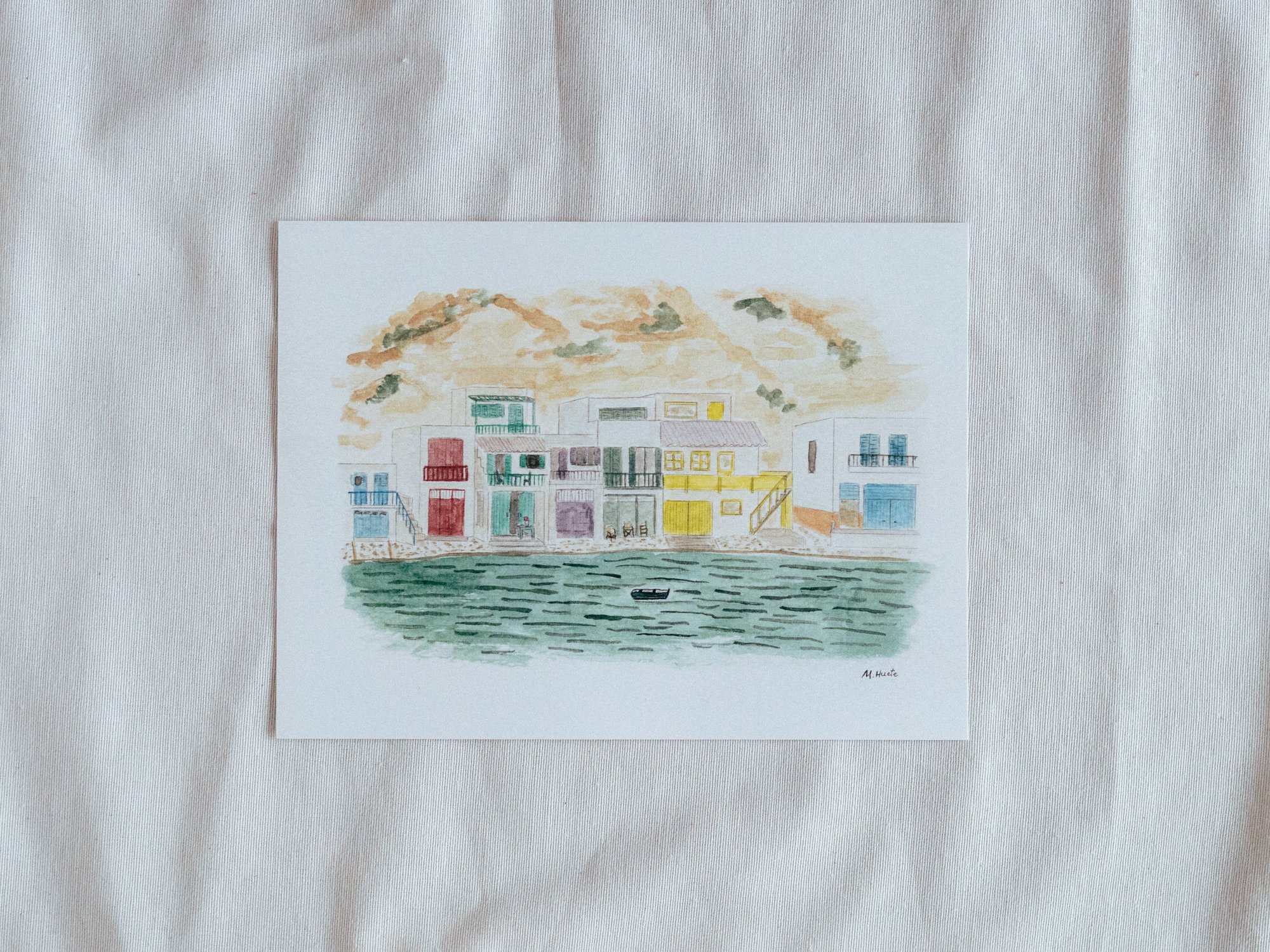 ilustración original de casas de pescadores.